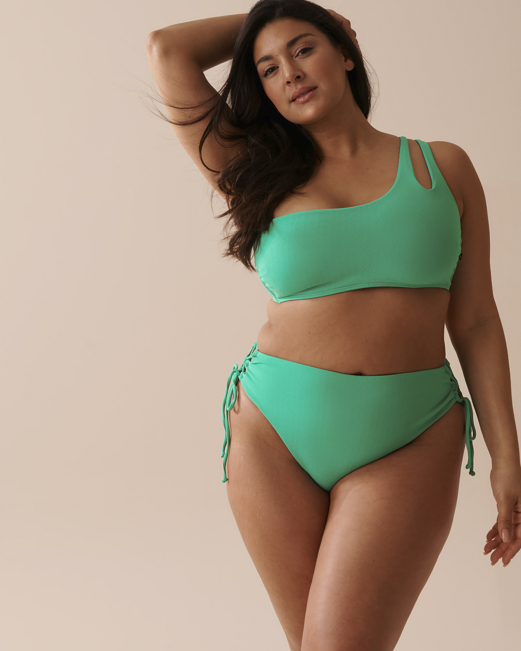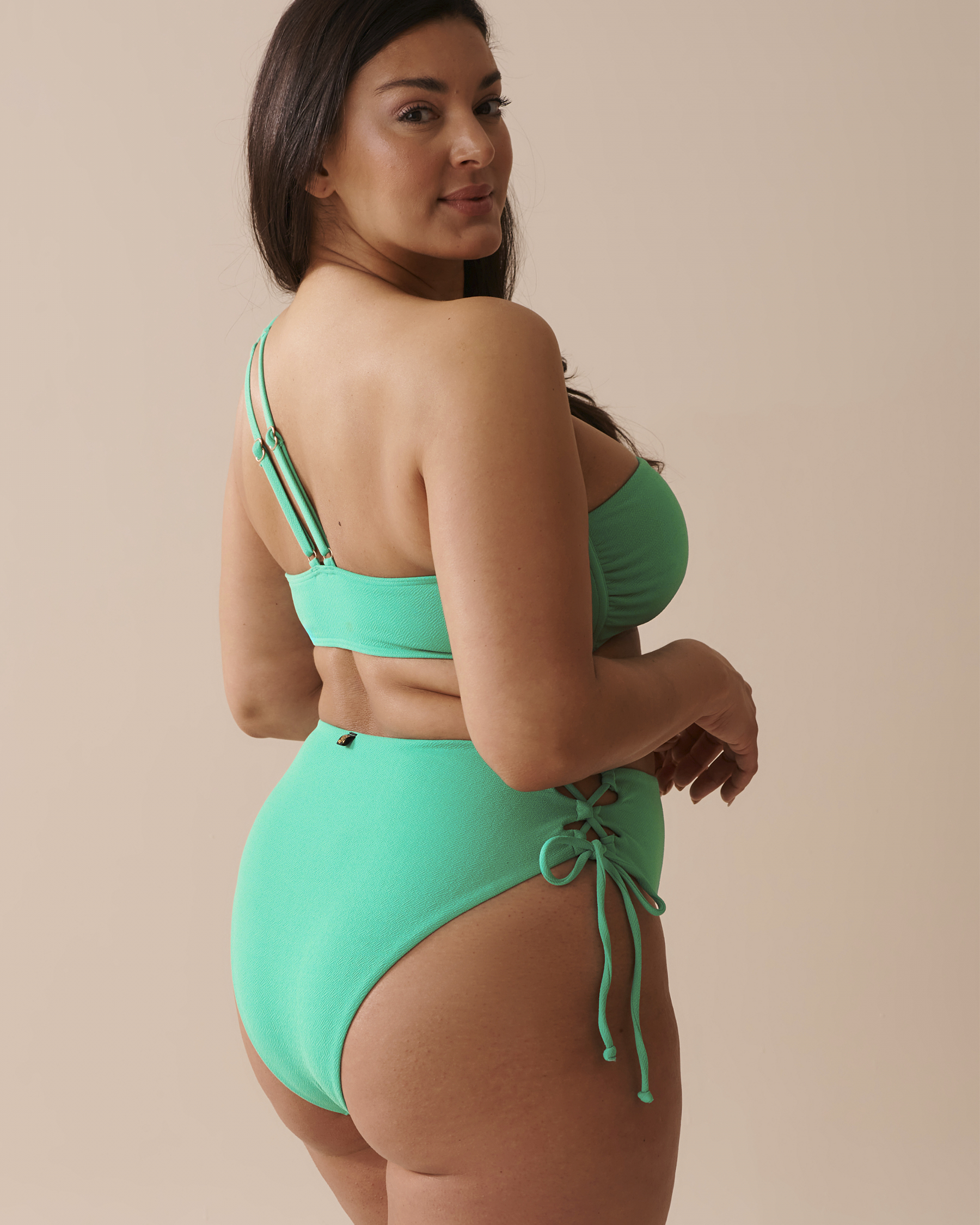 AQUA GREEN Recycled Fibers One Shoulder Bandeau Bikini Top