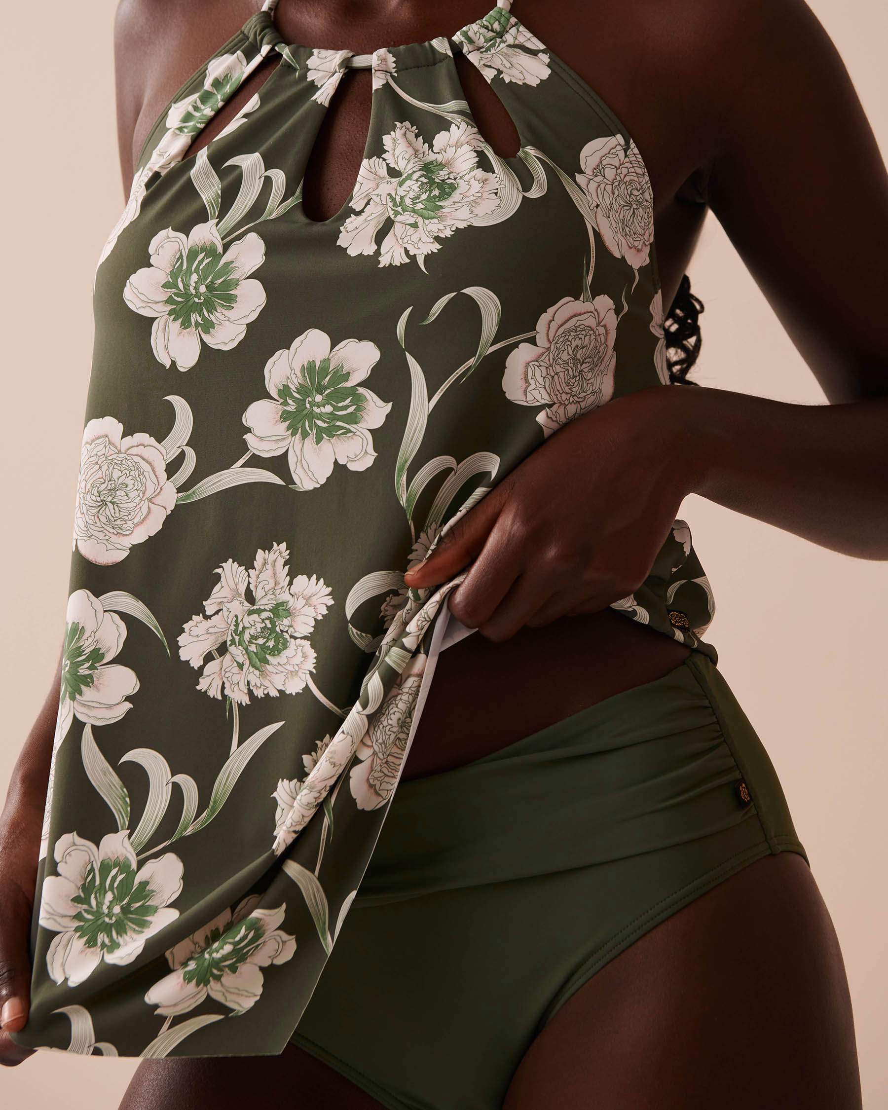 This tankini top offers a breezy feel that makes it super comfy. Its small keyhole openings and pointed hemline also add a stylish touch. With removable pads, it allows a more or less curved bust. To take good care of your favourite swimwear, visit our Care Instructions page.
