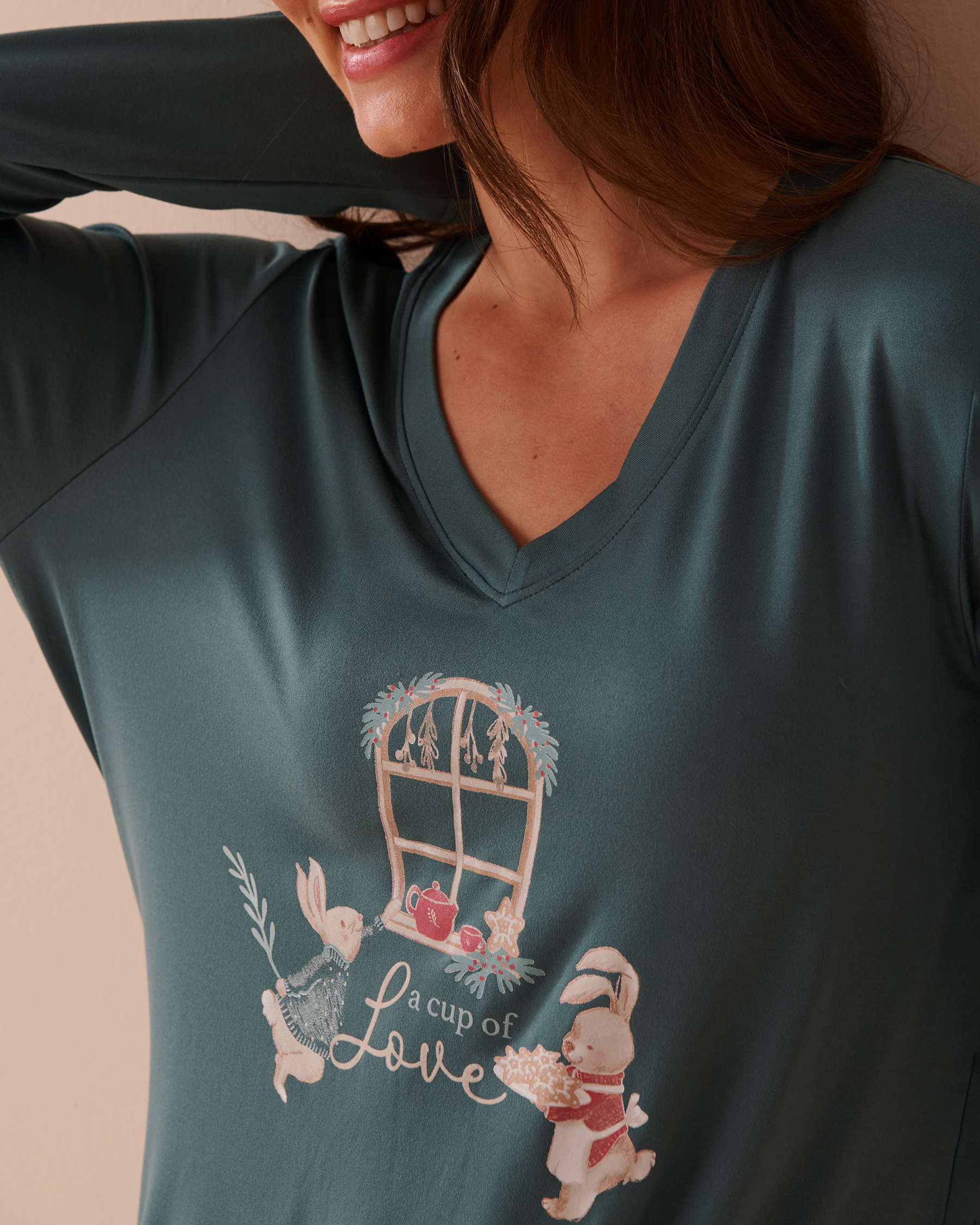Super soft pajamas are a winter must-have! And this long-sleeve shirt perfectly captures the warm and festive spirit of the holiday season. With its adorable print and incredibly comfy fabric, it's perfect for those long, lazy mornings.