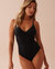 Maillot une-pièce croisé à l'avant texturé BLACK TROPICAL LEAVES