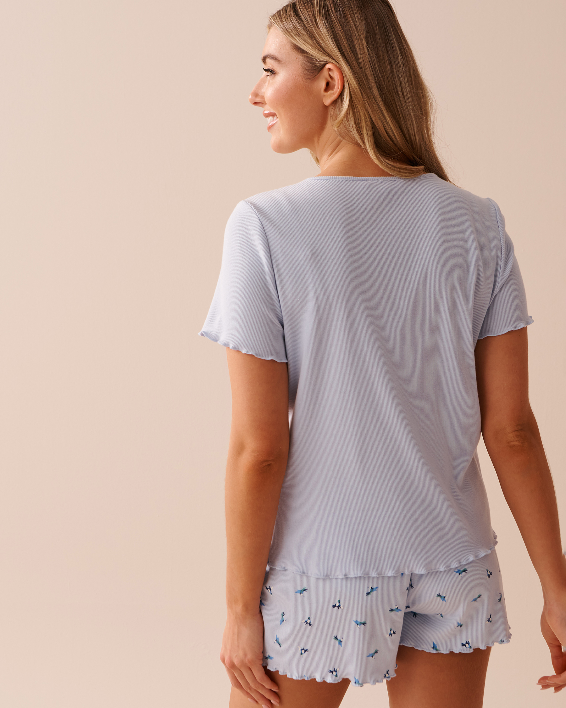 This charming t-shirt is perfect for a soft, comfortable night! Its ribbed fabric and lettuce edge add a delicate vintage touch.