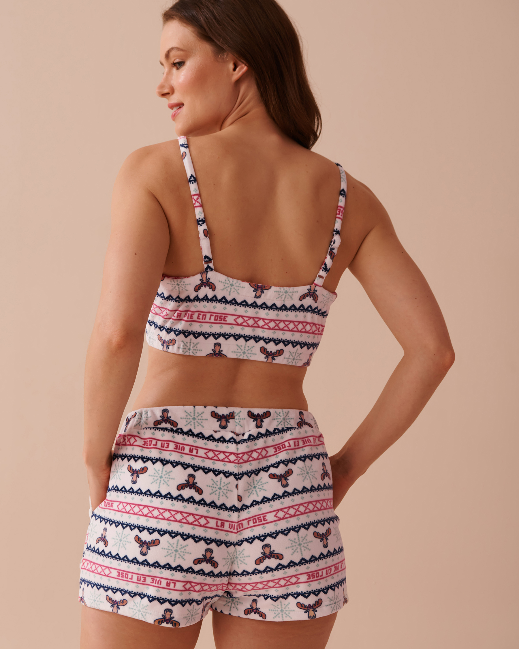 Moose Fair Isle Print Soft Velour Crop Cami