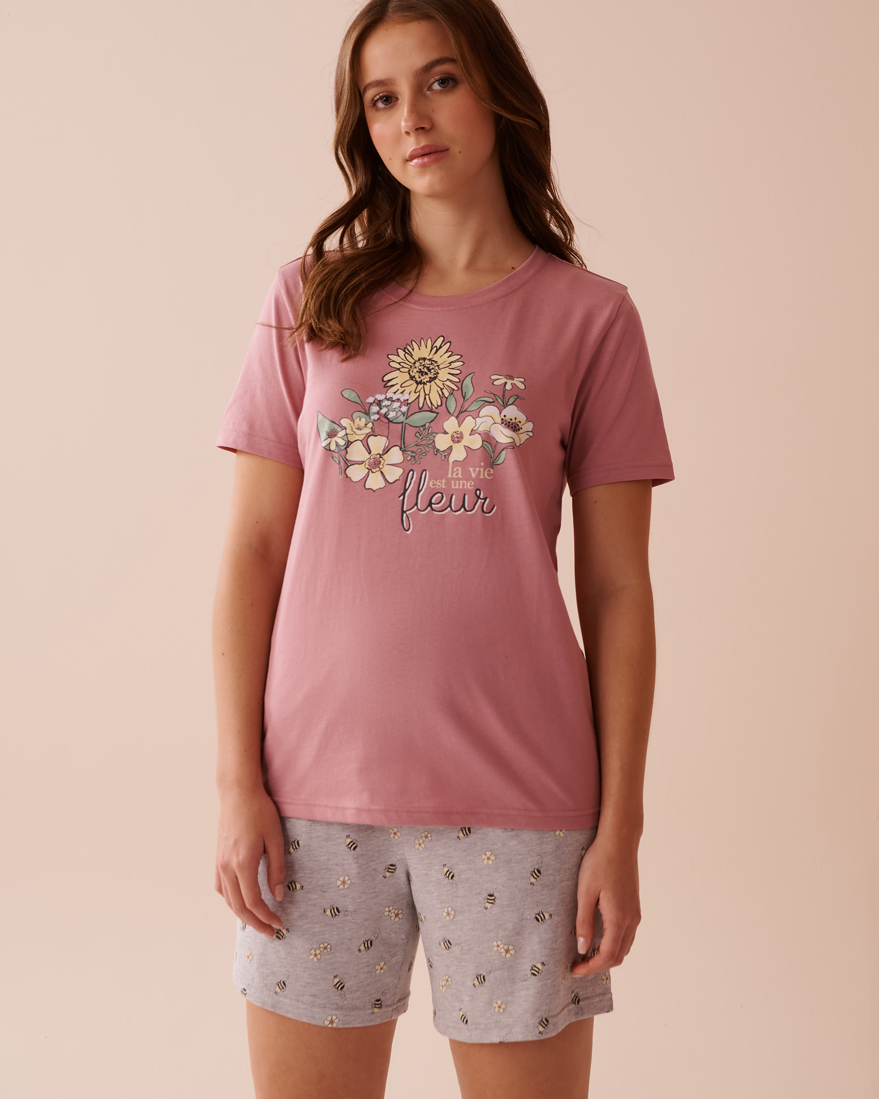 This soft, stretchy cotton t-shirt and our mix-and-match options are the perfect way to bring on spring! Choose from cheerful colors and cute bee or floral prints and create your dream pajama set.